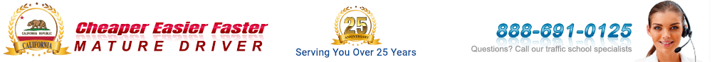 The Mature Driver Improvement Course provides instruction on defensive driving and California motor vehicle laws. During this course, information is provided on the effects that medication, fatigue, alcohol, visual or auditory limitations have on a person's driving ability.